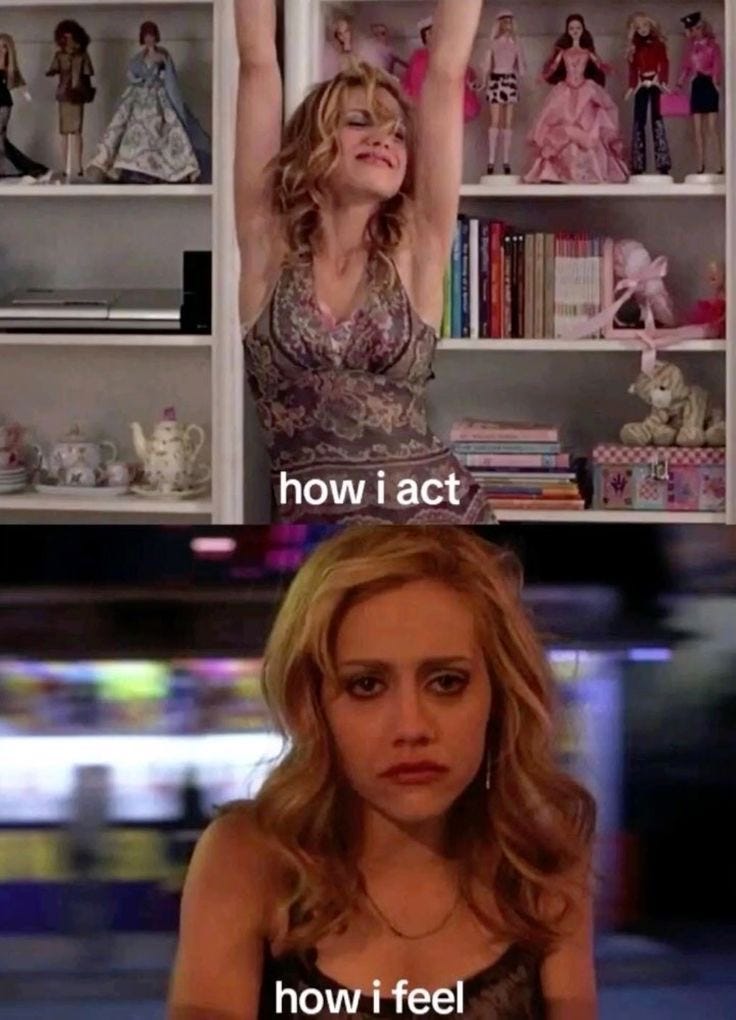That kind of awareness doesn’t come from nowhere. When you grow up attuned to everyone else’s emotions, you don’t get to fully inhabit your own. I learned from an early age that love is something you earn by being pleasant, entertaining, low-maintenance, and emotionally strong. I see this trauma come out in my friendships, I go above and beyond because I think everyone’s happiness is my responsibility. So when people meet me now in my twenties, navigating adulthood with a nervous laugh, a loud performance and a delayed emotional response - they assume I’m immature. But what they’re actually seeing is my frozen nervous system.